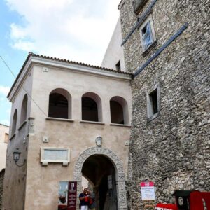 Il centro storico è perfettamente conservato e caratterizzato da case in pietra, archi medievali e piccoli slarghi panoramici.
